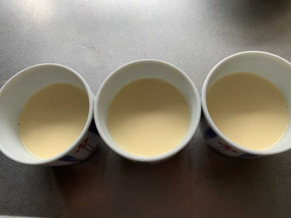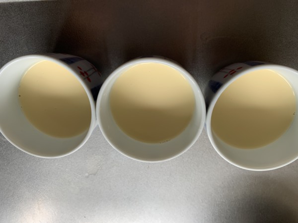 プリンに丁度いい耐熱容器がなかったので茶碗蒸し用の容器にセット。