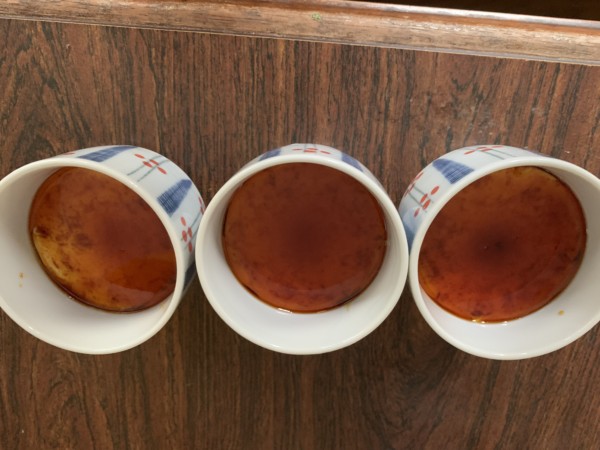 本当は完全に冷やし終わったプリンにかけるのがいいのだろうけど、カラメルソースも放っておくと固まってしまうので