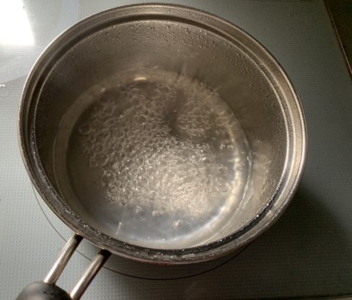 変に加熱してしまうと黄身が固まると思い、仕方なく湯煎でゆっくりほんのり温める 。